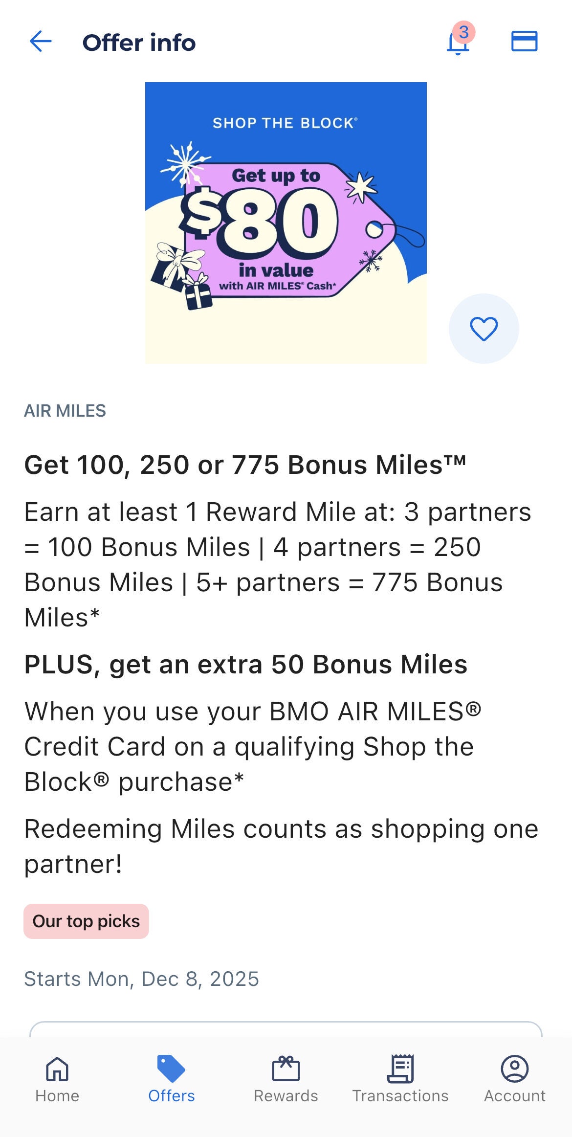 [Air Miles] Shop The Block:12月8日至12月22日期间,赚取高达775奖励里程(价值$81现金里程或Shell加油站$91消费额)。