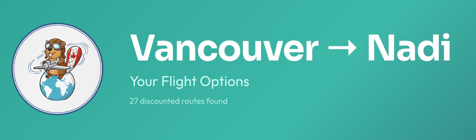 折扣链接: https://www.flywithbeaver.ca/routes?from=Vancouver&to=Nadi
