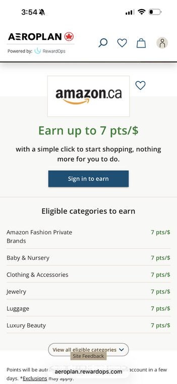 通过aeroplan eStore在Amazon购物,最高可赚取7积分/$